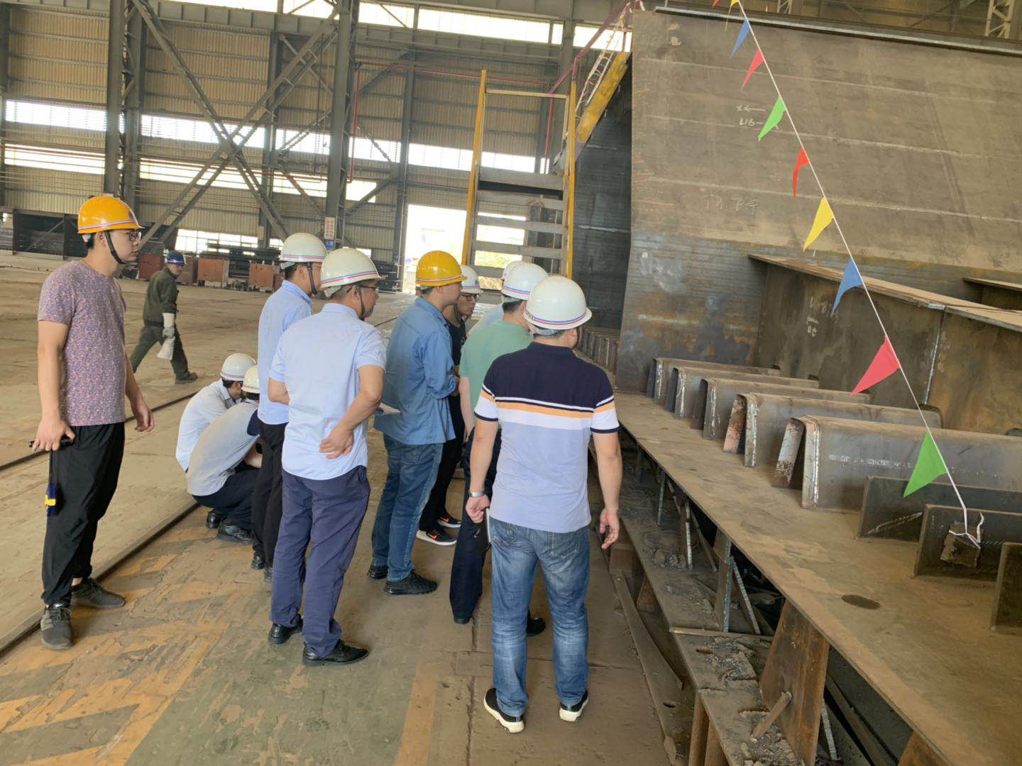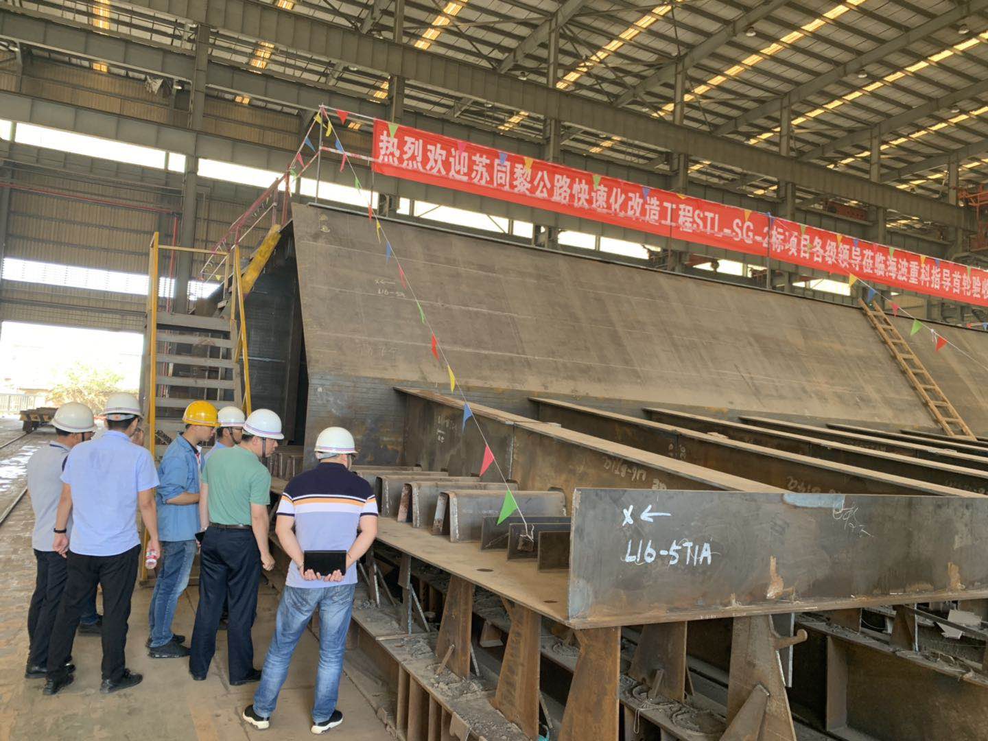 2019年7月10日,江蘇緯信工程咨詢有限公司組織在海波重科召開蘇同黎公路快速化改造工程STL-SG-02標(biāo)(L16聯(lián)5-9節(jié)段)首輪制造總結(jié)會(huì),與會(huì)人員查看了現(xiàn)場首輪鋼箱梁構(gòu)件,聽取了制造單位的匯報(bào),審閱了相關(guān)資料,討論形成最終意見:《蘇同黎公路快速化改造工程STL-SG-02標(biāo)工程鋼箱梁首輪制作施工》內(nèi)容齊全,資料詳實(shí);首輪鋼箱梁(L16聯(lián)5-9節(jié)段)整體尺寸、線形符合設(shè)計(jì)及規(guī)范要求;構(gòu)件檢驗(yàn)資料齊全有效,結(jié)構(gòu)、外觀良好,焊縫無損檢測(cè)合格。如圖:
