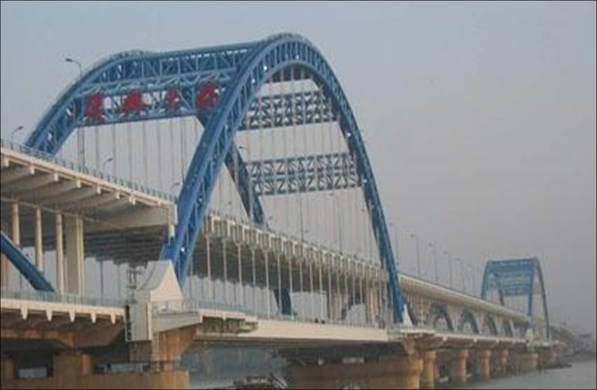 杭州錢塘江四橋(復(fù)興大橋)屬于雙層鋼拱橋,作為錢塘江上第一座特大型城市橋梁,于2004年10月建成通車,采用組合跨徑的雙層橋面鋼管混凝土系桿拱拱橋,橋梁上層設(shè)雙向六車道的快車道;下層中間為雙線輕軌,兩側(cè)設(shè)公交專用道、非機(jī)動車道及殘疾人專用設(shè)施,新穎、獨(dú)特的雙層鋼拱橋型國內(nèi)外獨(dú)一無二,是目前我國最具備綜合性功能的城市橋梁。1、工程地點(diǎn):浙江省杭州市