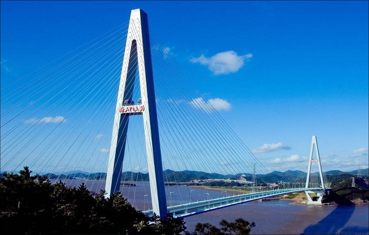 桃夭門大橋是舟山跨海大橋五座橋中的第三座大橋,系雙塔雙索面特大型混合式斜拉橋。桃夭門大橋跨越桃夭門水道,連接富翅島和冊(cè)子島,全長(zhǎng)888米,橋面寬27.6米,雙向四車道。大橋開工于2000年3月,2006年1月1日通車。