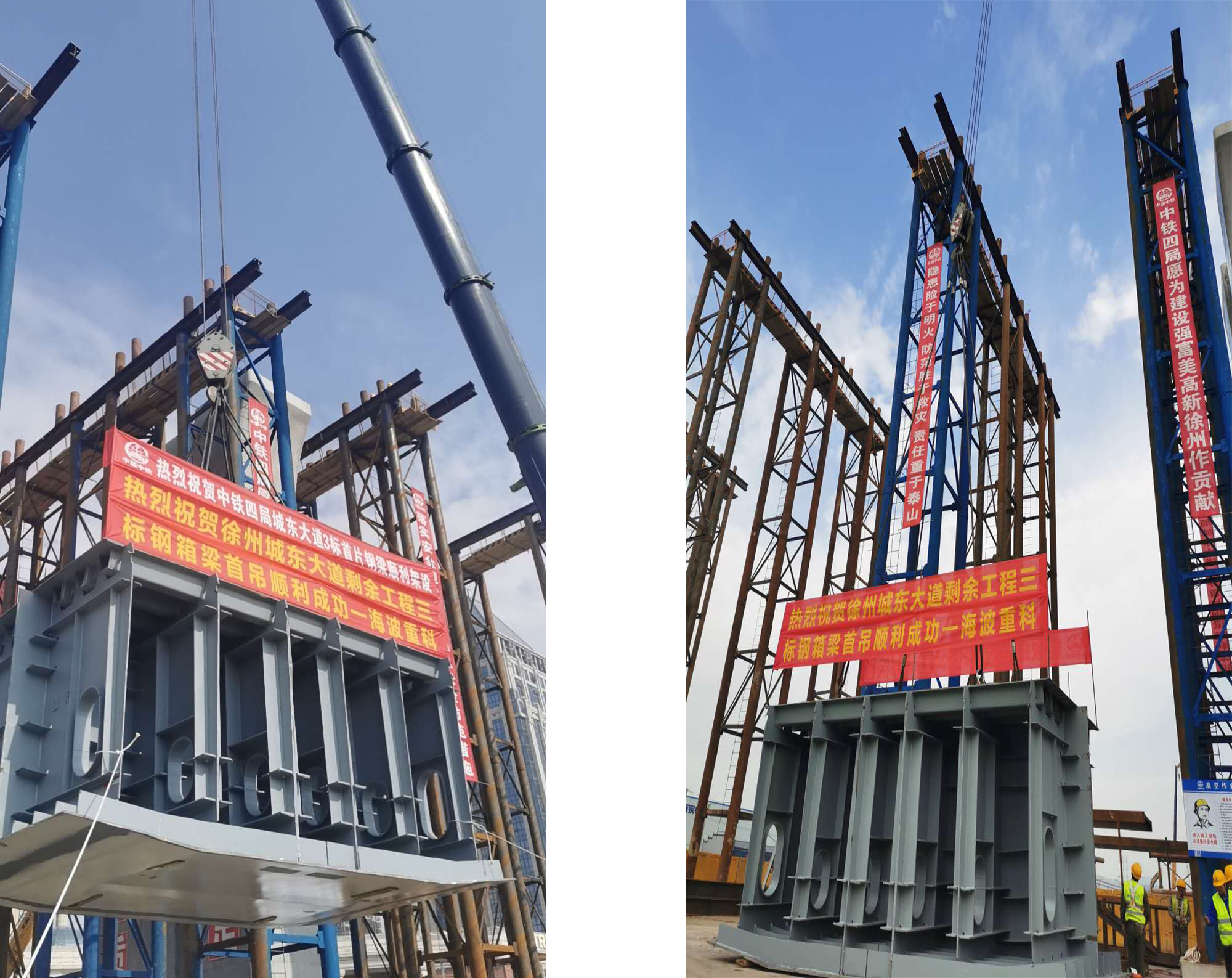 (海波重科新聞報道)2020年10月26日上午,徐州城東大道項目現(xiàn)場,伴隨著現(xiàn)場數(shù)百人的目光,首片鋼箱梁準(zhǔn)確無誤的落在預(yù)定架設(shè)點,這一刻標(biāo)志著徐州城東大道剩余工程3標(biāo)向著全面完工順利通車又前進了一大步!